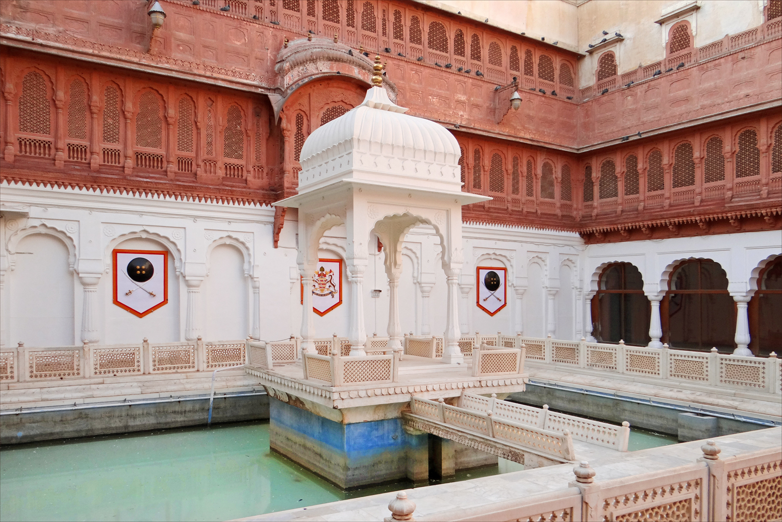 – Palacio Lalgarh: construido completamente en arenisca roja y con una mezcla de diferentes estilos arquitectónicos, el Palacio Lalgarh destaca en Bikaner gracias su majestuosidad y sus grandes dimensiones. Antiguo palacio reconvertido parcialmente en hotel, cuenta con amplias estancias y zonas ajardinadas con un puro estilo colonial.
